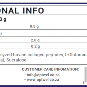 Ingredients: Hydrolyzed Collagen Peptides, Glucosamine Sulfate, Chondroitin Sulfate, Natural Vanilla and Raspberry Flavours, Sucralose.